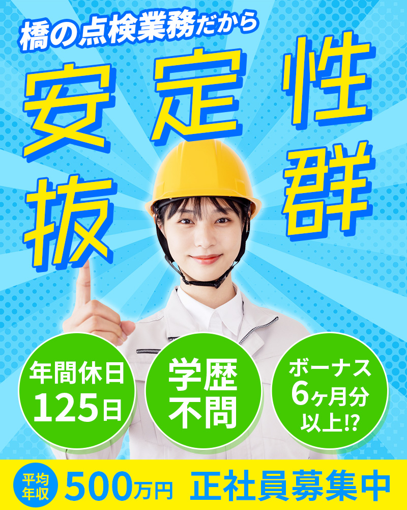 職種 正社員 雇用形態 業務委託契約*正社員昇格あり 給与 未経験、初任給の場合a. 基本給 :203000円〜b. 残業(固定):47000円〜月額:250000〜その他:5,000円~a+b :240,000円~賞与 前年期 7ヵ月 ※その他、手当あり 勤務地 埼玉県〒343-0023埼玉県越谷市東越谷8丁目12-3東京スカイツリーライン「越谷駅」徒歩25分東京スカイツリーライン「越谷駅」→越谷駅東口朝日バス「越谷市立病院」徒歩3分※車通勤可能 駐車場有 休日 4週8休制(月9日程度)年末年始休暇/有給休暇/慶弔休暇/特別休暇/夏季休暇/日曜日・祝祭日年間休日120日以上! 会社名 株式会社ティー・エム・サーベイ 住所 〒343-0023 埼玉県越谷市東越谷8-12-3 登録は下のバナーを クリックするだけ!